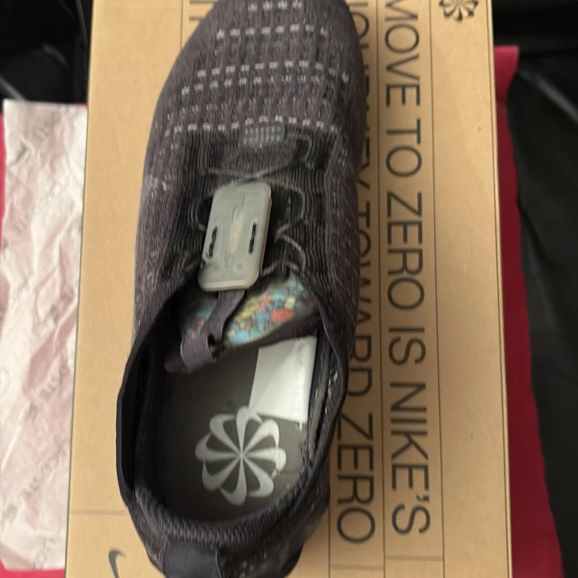 Nike Vapormax Flyknit sneakers i mörkgrått med stickad ovandel och genomskinlig, bubblig sula. Snyggt mönstrad innersula och diskret Nike-logga på sidan. Skon har snörning med smart lås och är tillverkad i flyknit-material för en lätt och flexibel känsla.