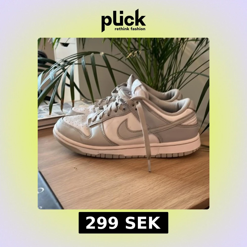 Säljer mina nike dunk grey fog som jag haft i ett år de är sparsamt använda men fortfarande små tecken på användning.