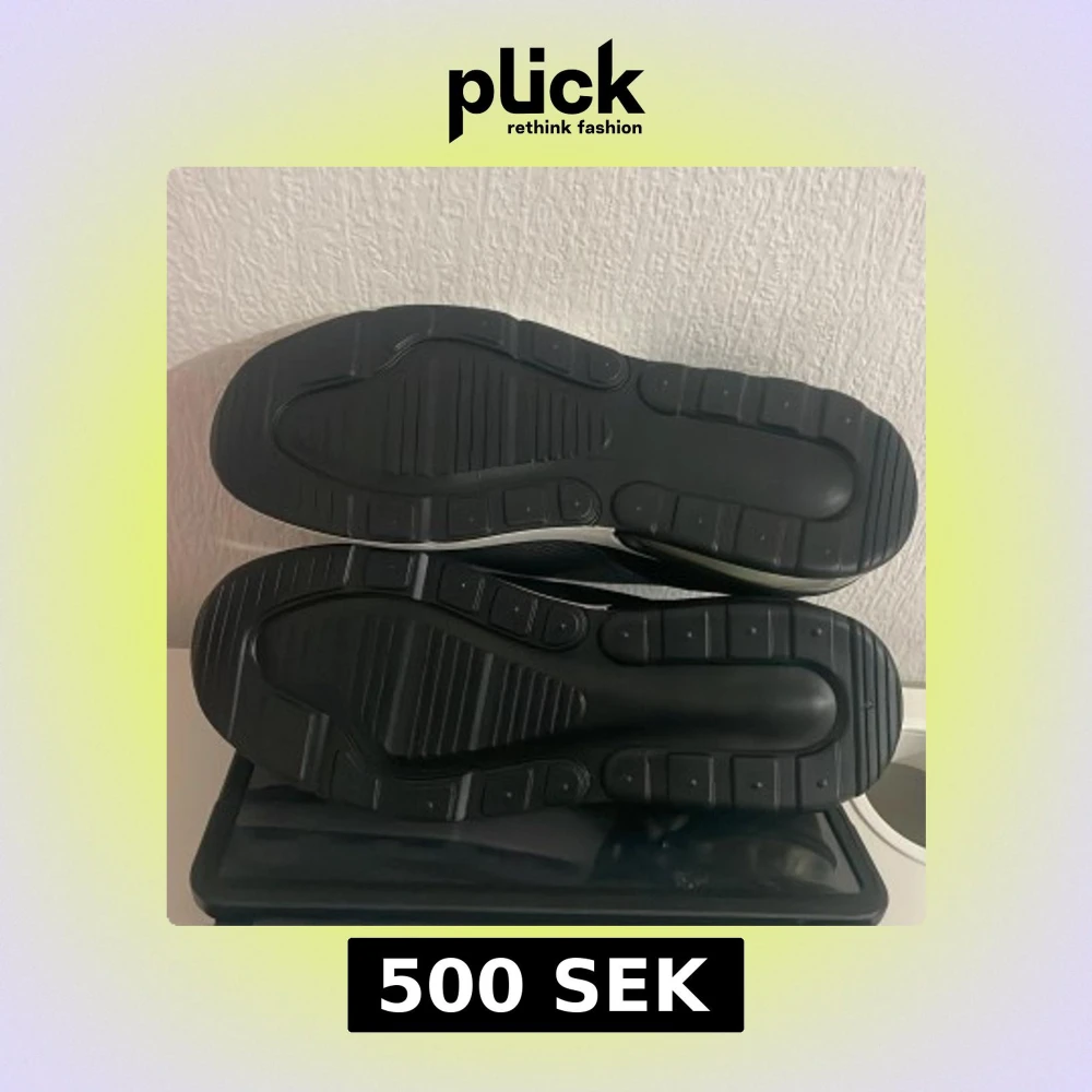 Svarta sneakers med vit sula och tydlig AIR270-tryck på sidan och plösen. Skorna har snörning, mesh-överdel och en synlig luftbubbla i hälen. Snygg sportig look med rund tå och platt sula. Helt nya.