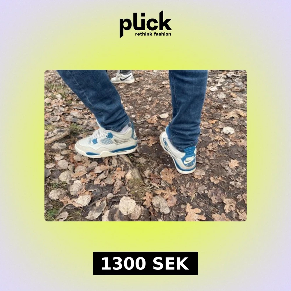 Nike Air Jordan 4 Retro sneakers i vit och blå färg med grå detaljer. Skorna har meshpaneler, snörning och en platt sula med tydlig Nike Air-logga på hälen. Ikonisk design med högt skaft och klassiska plastdetaljer vid snörningen. Perfekt för dig som gillar streetwear och sneakers. Allt med följer vid köp ink box extra skosnören och kvitto!hör av er vid frågor!