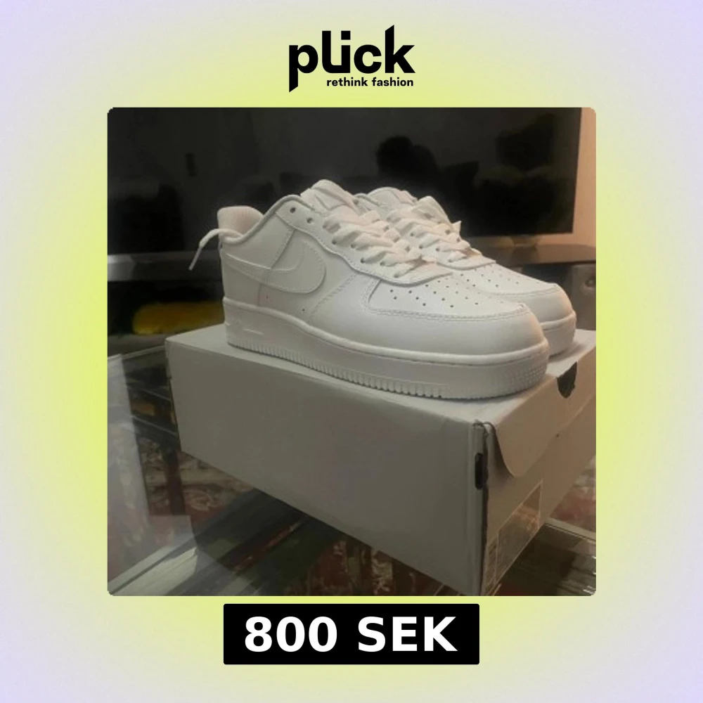 Säljer ett par klassiska vita Nike Air Force sneakers. Skorna har en stilren design med snörning och är tillverkade i syntetmaterial. Perfekta för en casual look.