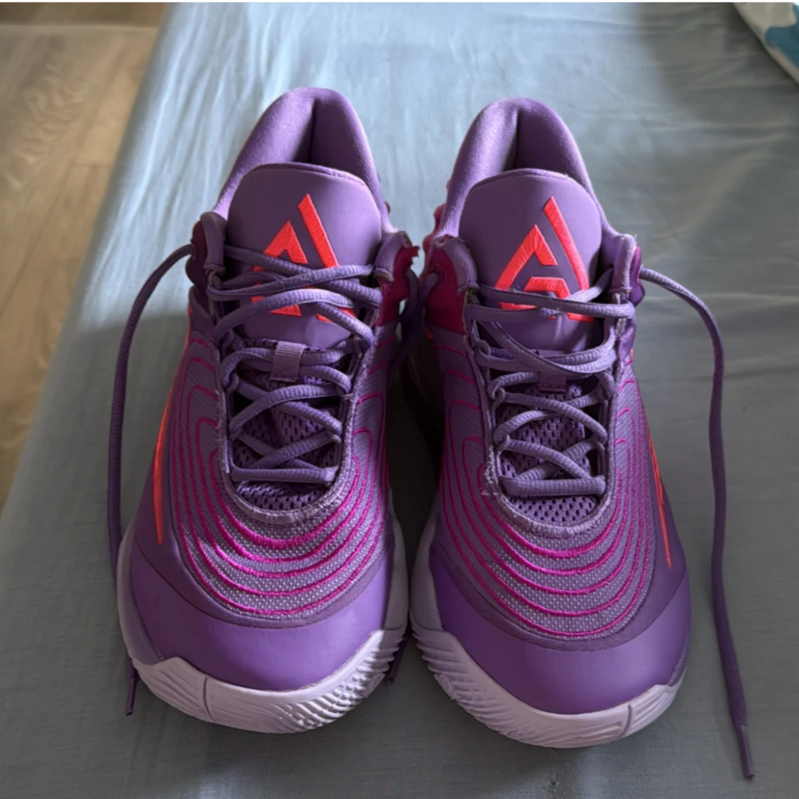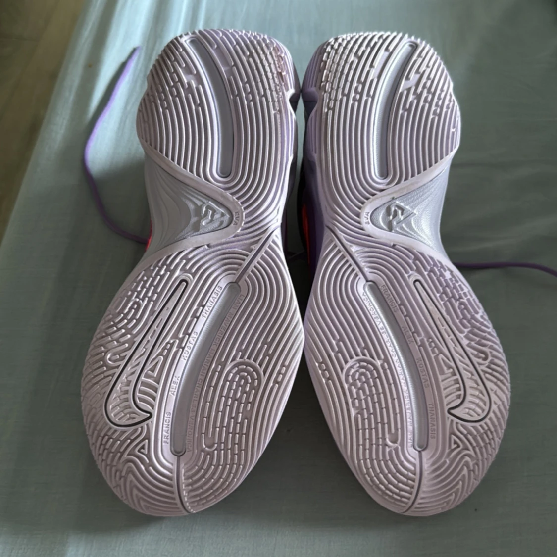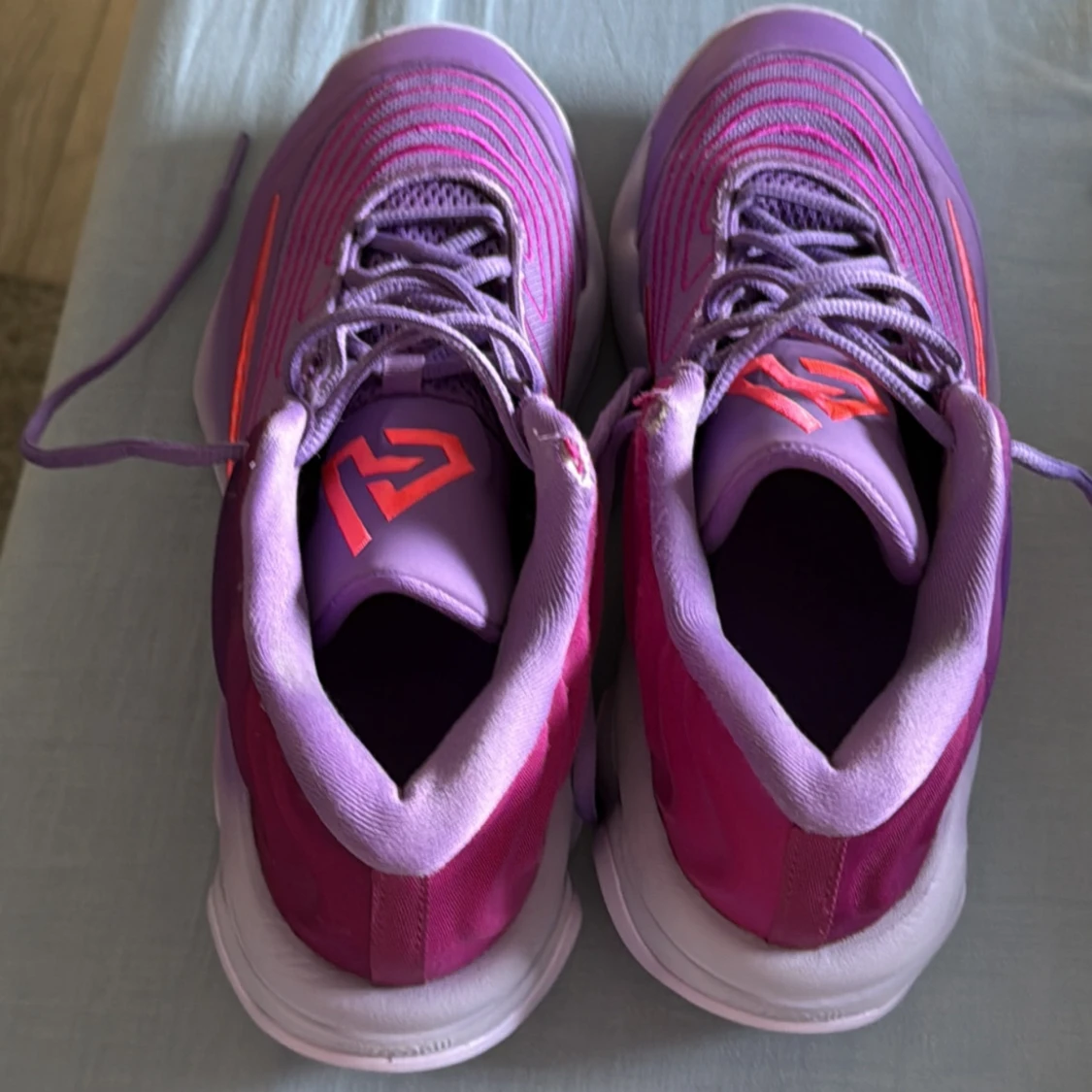 Säljer ett par snygga lila och rosa Nike sneakers med neonrosa detaljer och logga. Skorna har snörning och en platt sula, perfekt för dig som gillar färgstarka träningsskor. Ikonisk Nike Swoosh på sidan och bekväm passform.