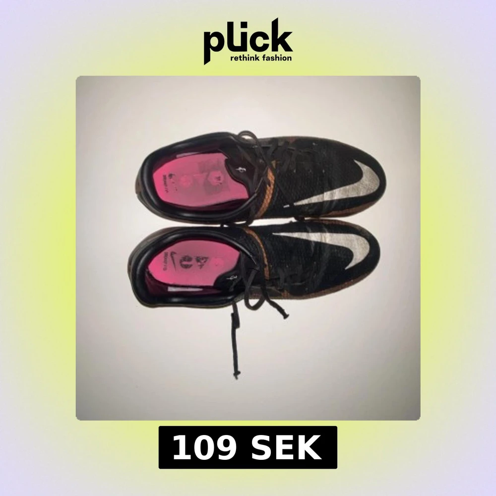 Säljer ett par Nike Phantom fotbollsskor i svart och koppar med vita detaljer och rosa dobbar. Skorna har snörning och är designade för bra grepp på planen. Perfekta för dig som vill sticka ut på fotbollsplanen.