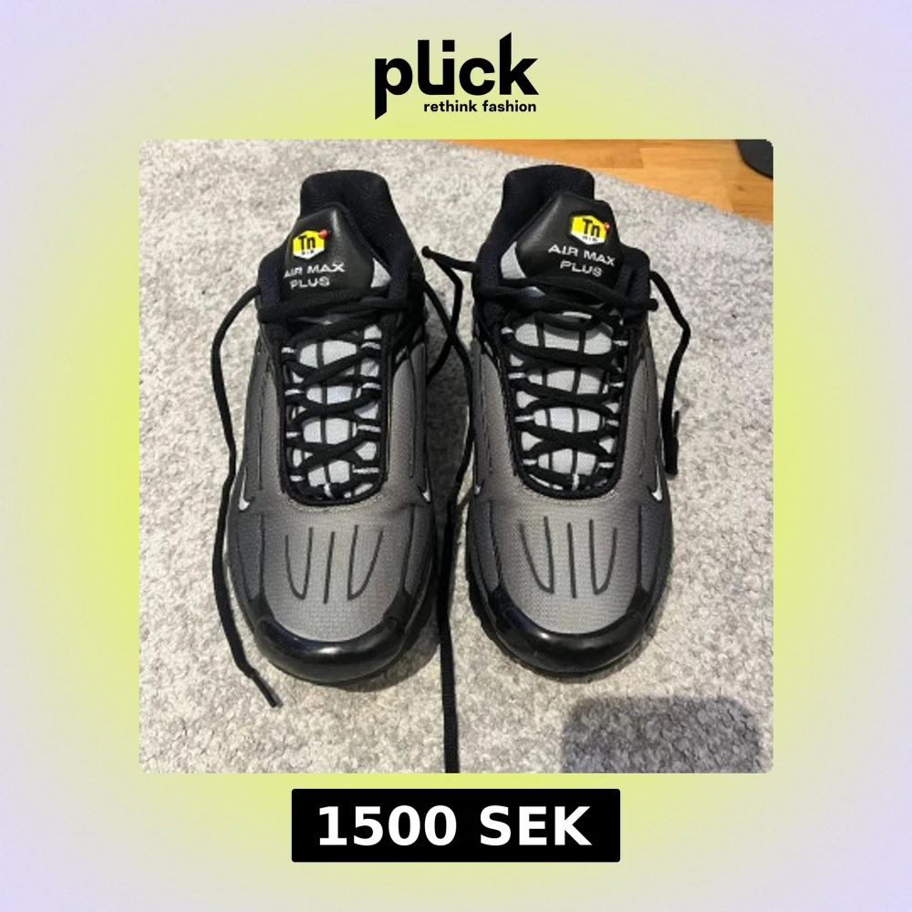 Snygga gråsvarta Nike TN PLUS 3 skor, riktigt snygga, enkla att matcha och perfekta för dig som gillar ”streetstyle” dem har inga defekter över huvudtaget och dem rengörs naturligtvis innan frakt. Säljs bara pga dem inte kommer till användning hos mig nå mer, hör gärna av dig vid frågor eller fler bilder.