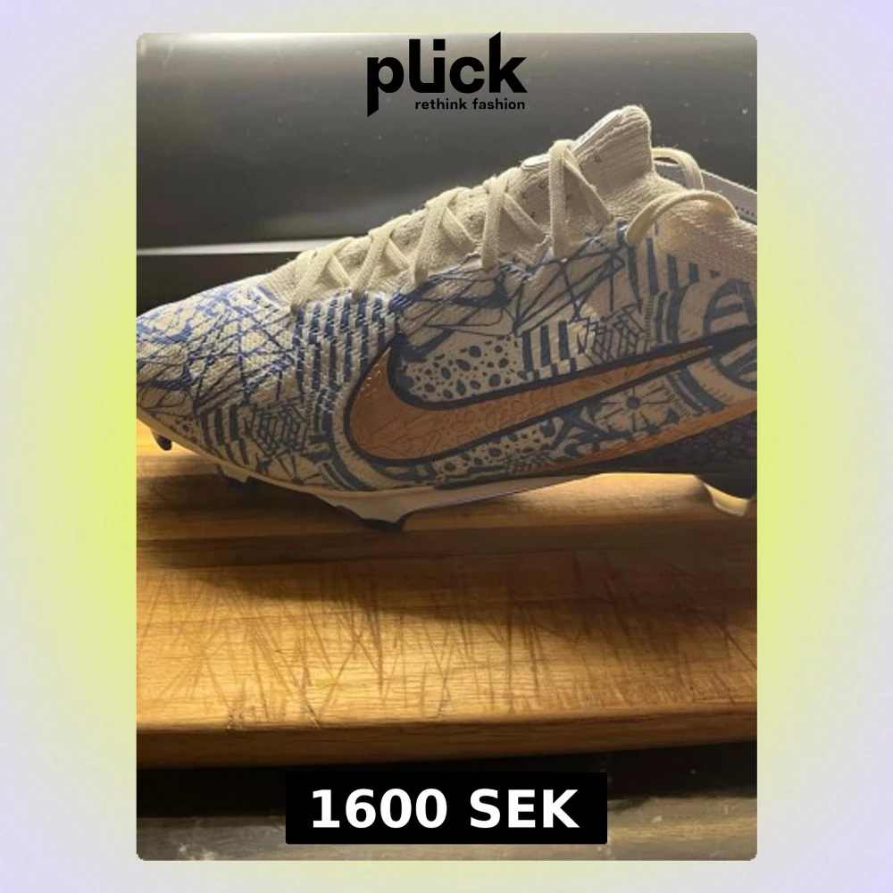 Säljer ett par Nike vapor fotbollsskor med unik blå och vit grafisk design och guld swoosh. Skorna har snörning, mönstrad ovandel och dobbar för bra grepp på planen. Materialet är syntet och skon har en låg profil för snabbhet och kontroll. Cristiano Ronaldos design är det på skorna. Nya kostar 3500 kr och säljs inte längre i butik och dessa är inte mycket använda. Det är elite och menas med att det är bästa kvaliten som elit spelarna spelar med. Pris kan diskuteras!