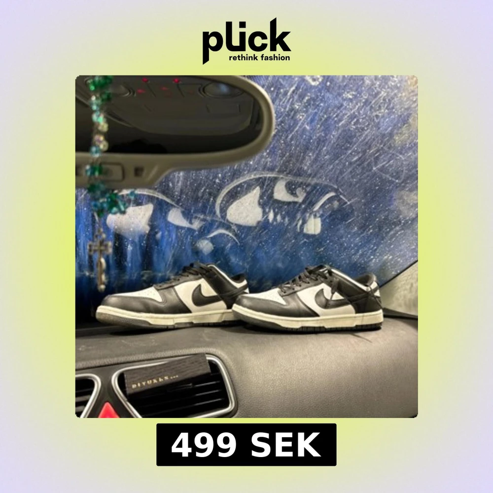 Säljer ett par Nike Dunk Low sneakers i svart och vitt. Klassisk design med svart swoosh, snörning och platt sula. Perfekta för dig som gillar streetwear och vill ha en stilren look. Säljer dem eftersom det ej riktigt passade min stil, de är använda 3 gånger endast.