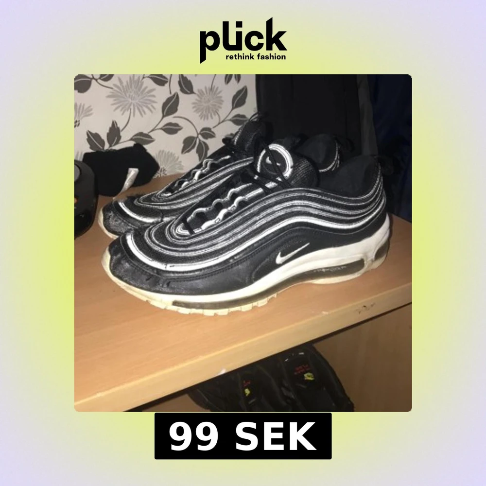 Hej säljer ett par air maxs 97or inte i bästa skicket har ett stort hål i bubblan