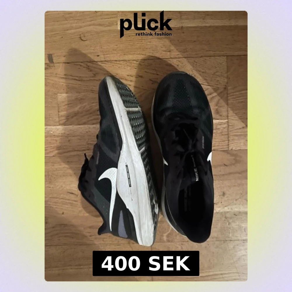 Nike sneakers i svart med vit sula och vit swoosh på sidan. Ovandelen är i mesh för bra ventilation och har snörning framtill. Snygg sportig design med rund tå och platt sula, perfekt för dig som gillar att röra på dig och vill ha en clean look. Nike Pegasus