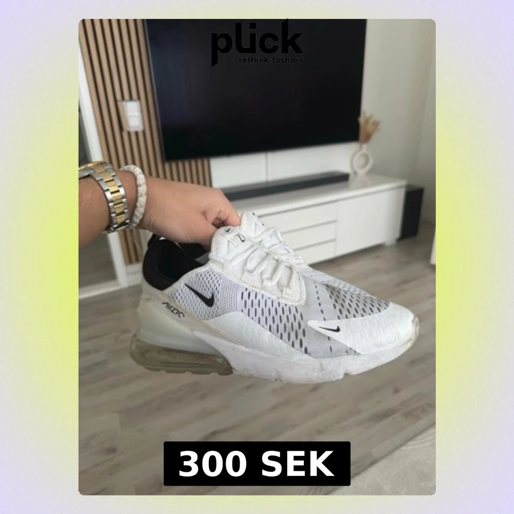 Nike Air Max 270 sneakers i vitt med svarta detaljer och stor synlig Air Max-bubbla i hälen. Ovandelen är i mesh med ventilerande hål och snörning framtill. Snygg sportig look med svart Nike-logga på sidan och AIR270-tryck. Perfekta för dig som gillar streetstyle.