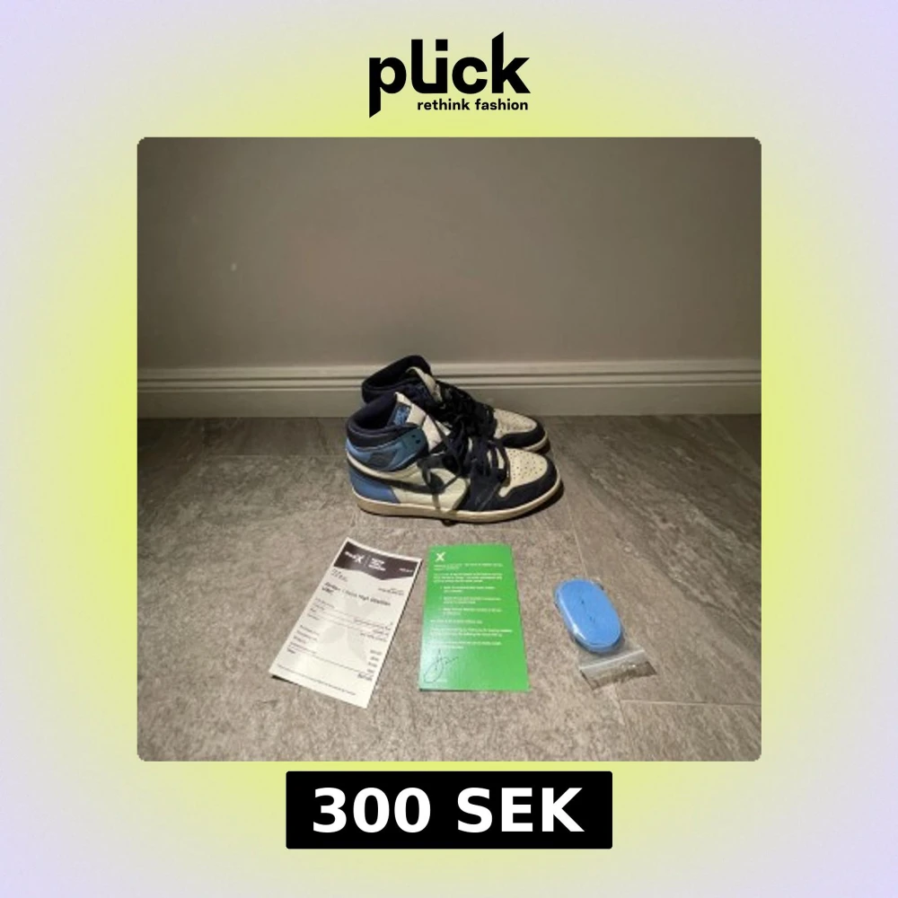 Jordan 1 Obsidian – stl 44 Säljer ett par Jordan 1 Obsidian i storlek 44. Skorna har använts men är fortfarande i bra skick med lite slitage. Ett klassiskt och eftertraktat par sneakers som passar både till vardags och för samlare. ✔ Märke: Jordan ✔ Modell: 1 Obsidian ✔ Storlek: 44 ✔ Skick: Bra – använda men väl omhändertagna Finns för avhämtning eller kan skickas! Skicka PM vid intresse.