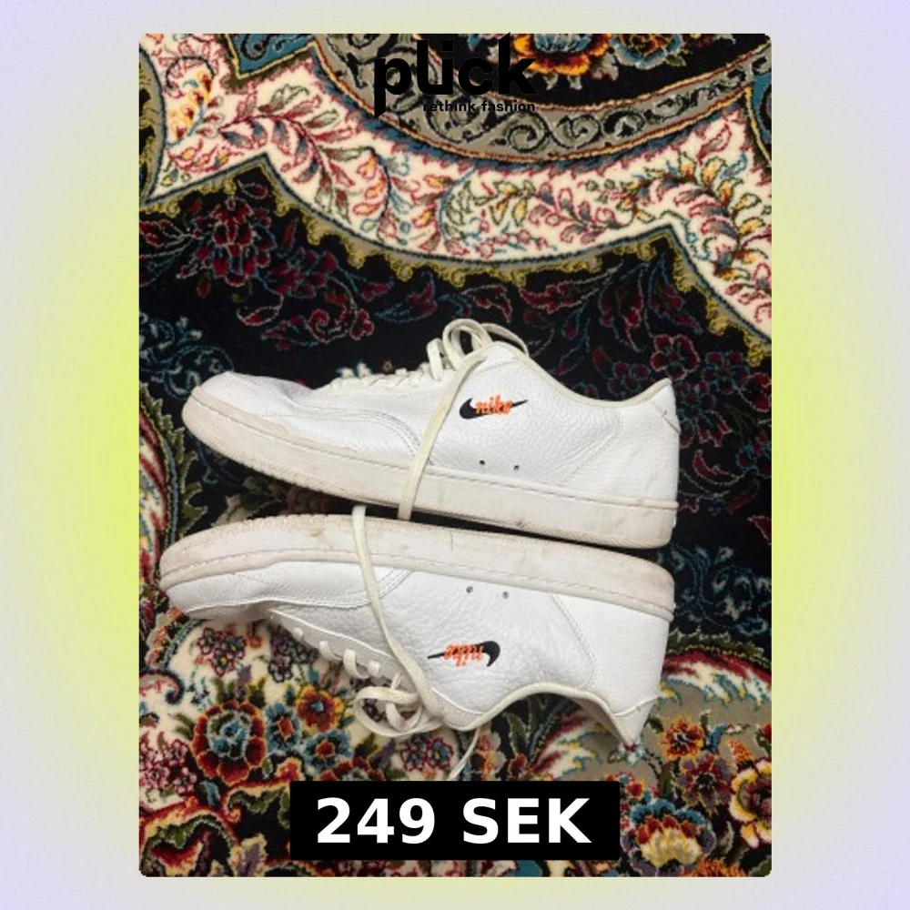 Nike Air Force 1 sneakers i vitt skinn med orange och svart Nike-logga på sidan och tungan. Klassisk låg modell med rund tå, snörning och platt sula. Perforerade detaljer på tån för extra ventilation. Snygg och tidlös design som passar till streetwear.