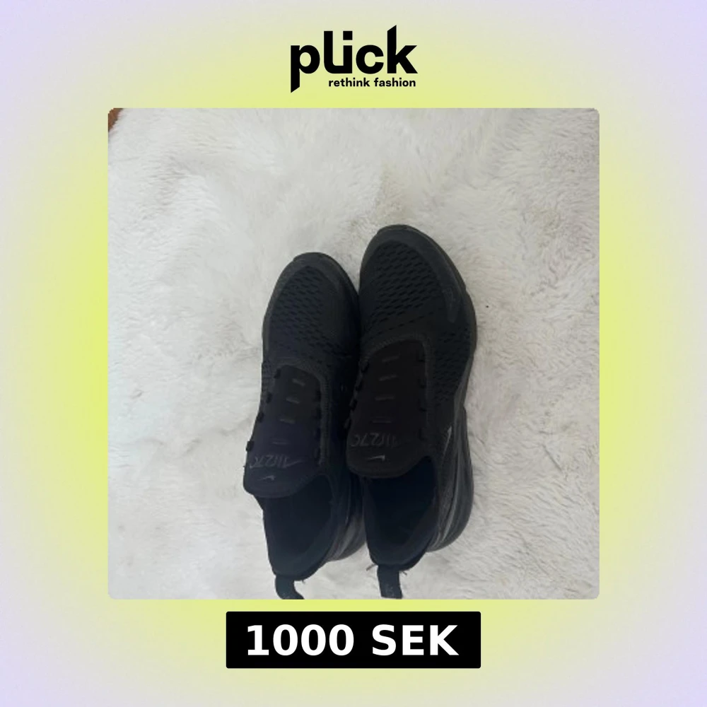 Snygga helsvarta Nike Air Max 270 sneakers med mesh-ovandel och tydlig Air Max-dämpning i hälen. Skorna har en sportig vibe, diskreta loggor och en chunky sula som ger extra komfort. Perfekta för dig som gillar streetstyle och vill ha en clean look.