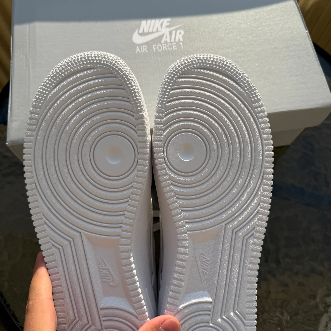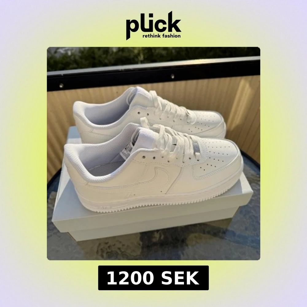 Klassiska Nike Air Force 1 i helvitt skinn med perforerad tå, vit sula och snörning. Snygg och tidlös sneaker med låg profil och rund tå, perfekt för dig som gillar cleana och stilrena skor. Modell: Air Force 1 '07 Pure White.