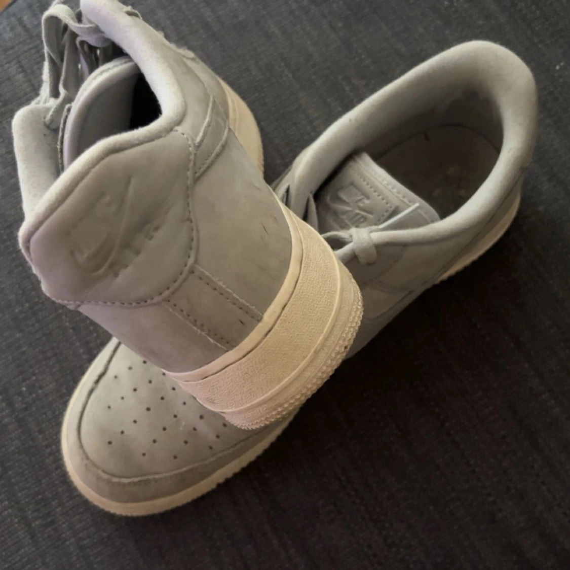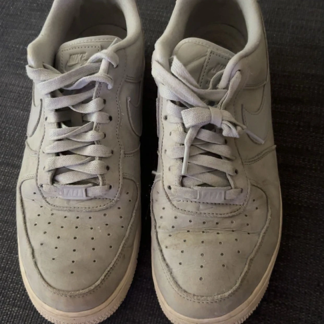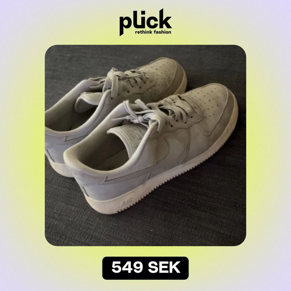 Tja! Säljer mina AF1 i en typ av mocka material. Använd i ca en höst lite mindre. Skicket är 7/10, dem har en liten crease. Pris kan diskuteras vid en snabb affär!