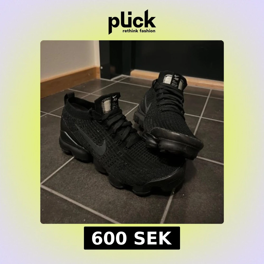 Säljer ett par helsvarta Nike Air Vapormax Flyknit. Ett litet hål under ena sulan annars i toppen skick.