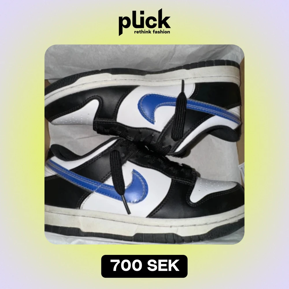 Nike dunk low köpa för 1145kr på zalando. Vit, svart och blå. Använda få gånger, som nya, inga väck. Skickas i orginalboxen. Skosnören (80cm) och nya creasingskydd skickas också med. Skorna är ganska små i storleken. Skriv gärna om du har frågor