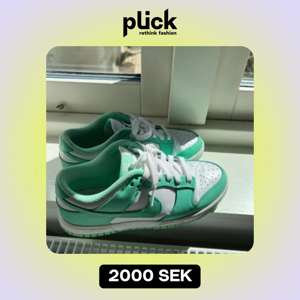 Så snygga Nike dunk low i turkos!! Använda typ 1 gång, så fint skick, storlek 37.5 Säljer då dem tyvärr inte kommer till användning. Kan mötas upp i Stockholm eller posta!