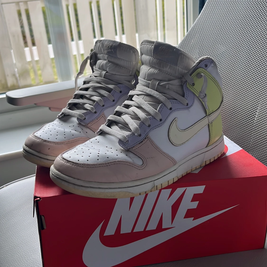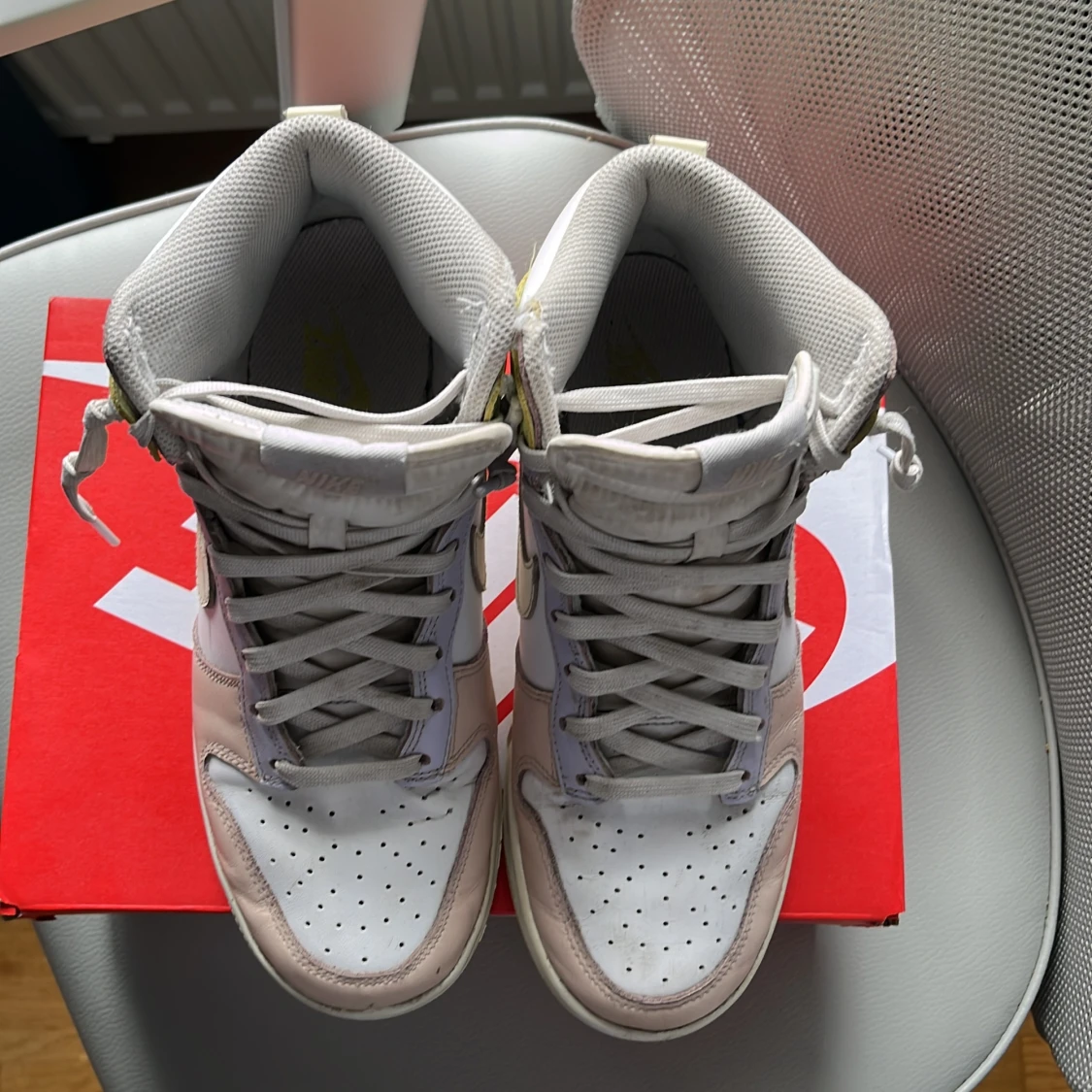 Väldigt bra skick, Minimalt cresade, Box medföljer och jag köpte dem hos Nike. Kan diskutera pris. Egentligen en women sko med har själv använt en del och passar lika bra hos killar. Kan diskutera pris.