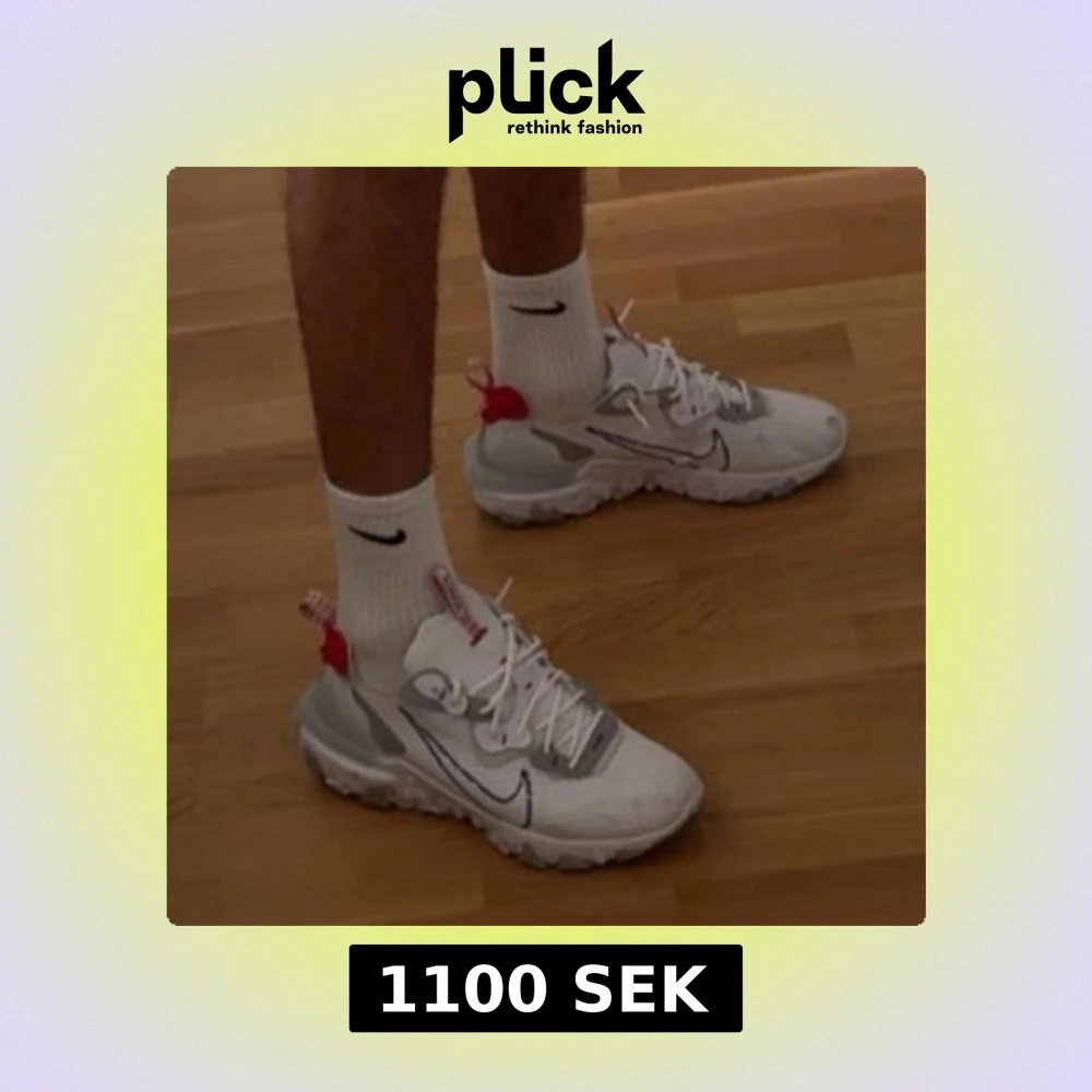 Nike React sneakers i vitt och grått med röda detaljer och tydlig Nike-logga på sidan. Skorna har snörning, platt sula och modern design. Perfekta för dig som gillar sportig och trendig stil. Och helt nya väldigt bra kondition box ingår.
