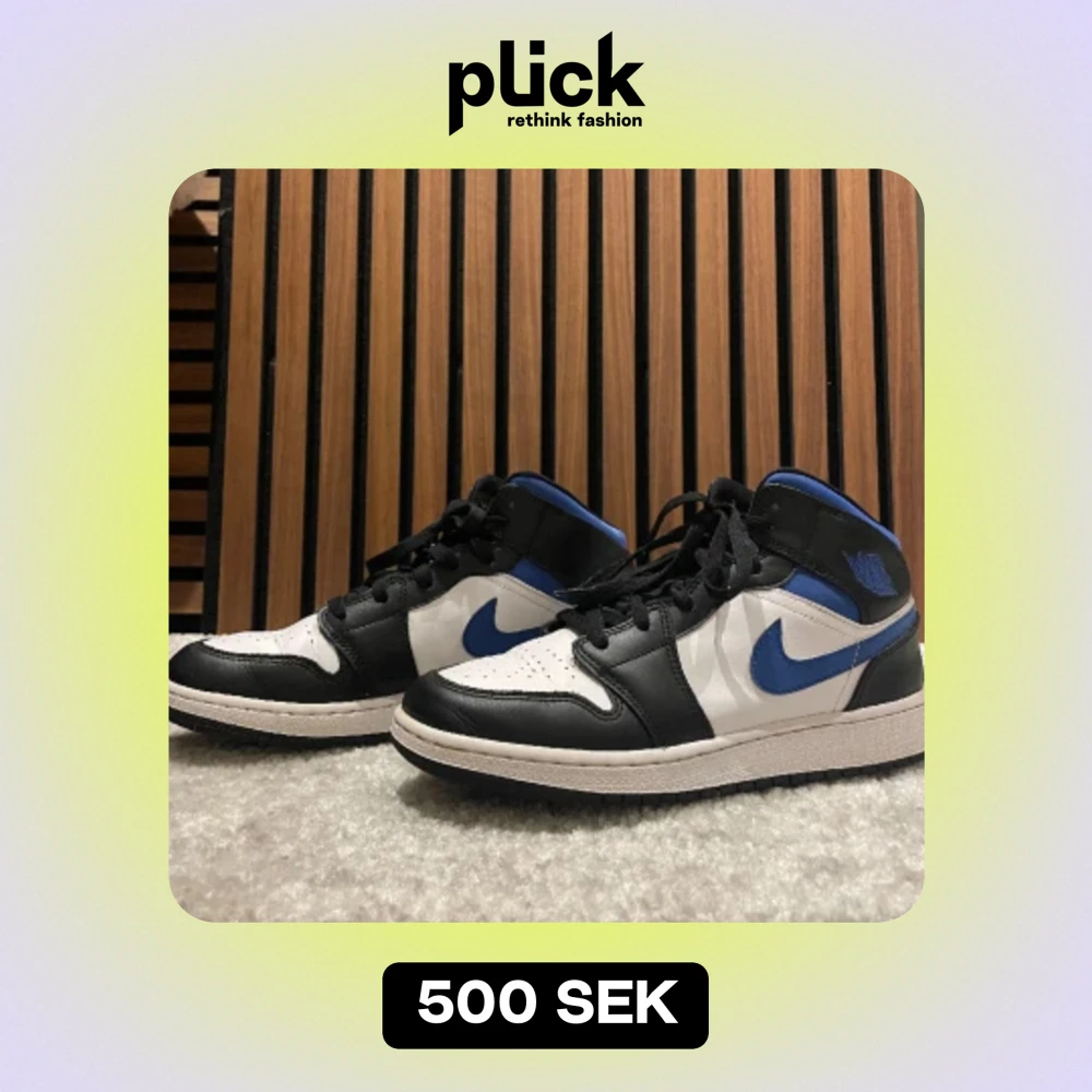 Jag säljer mina Nike Air Jordan 1 Mid i Royalblå. De är använda men inte trasiga. Fina och fräscha. Skriv privat för fler bilder!☺️🥳💓