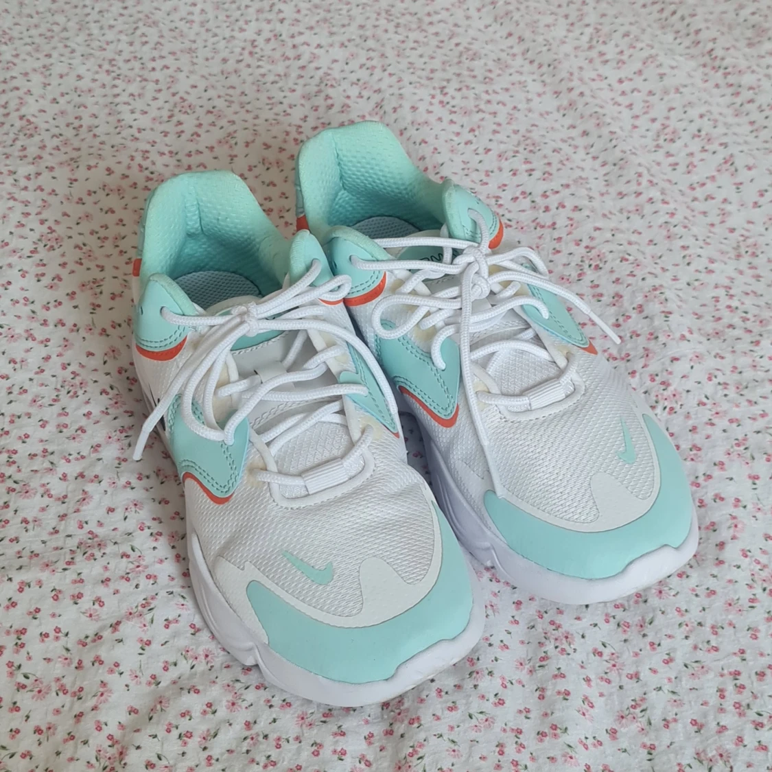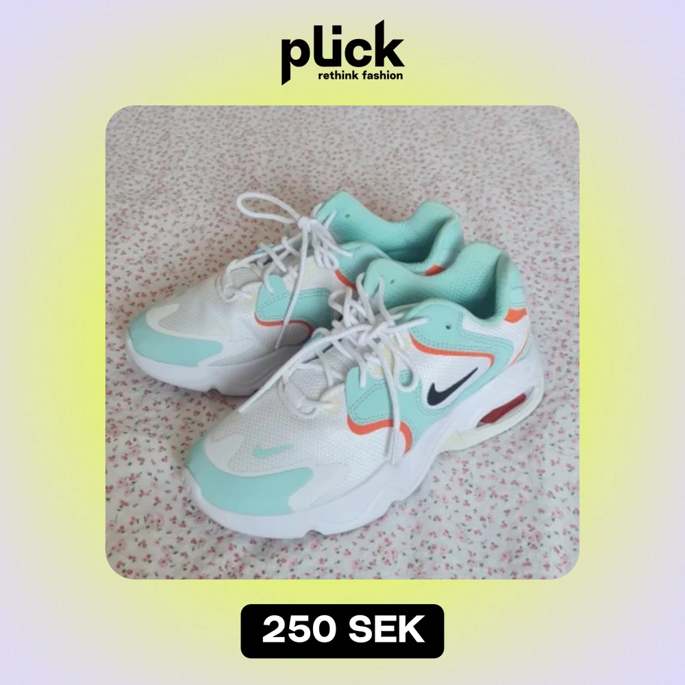 Supersnygga Nike skor med turkosa och orange detaljer :) De är i väldigt bra skick och är endast använda ett fåtal gånger!