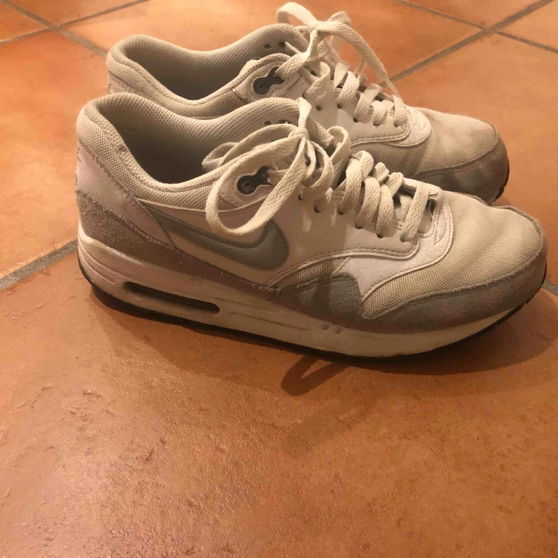Snygga Nike air Max, gråa och vita i fint skick! Storlek 38, köparen står för frakt! Nypris: 1100kr