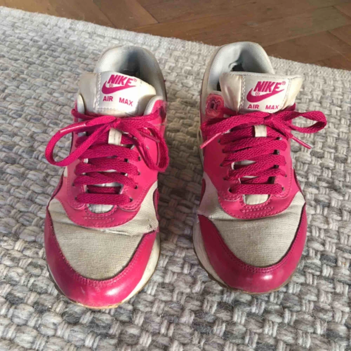 Rosa/vita Nike Air Max. Extremt sköna. Använda en del därav billigt pris (ca 1000 lappen originalpris), men ändå i fungerande & gott skick. Frakt tillkommer (ca 150kr) om dem måste postas.