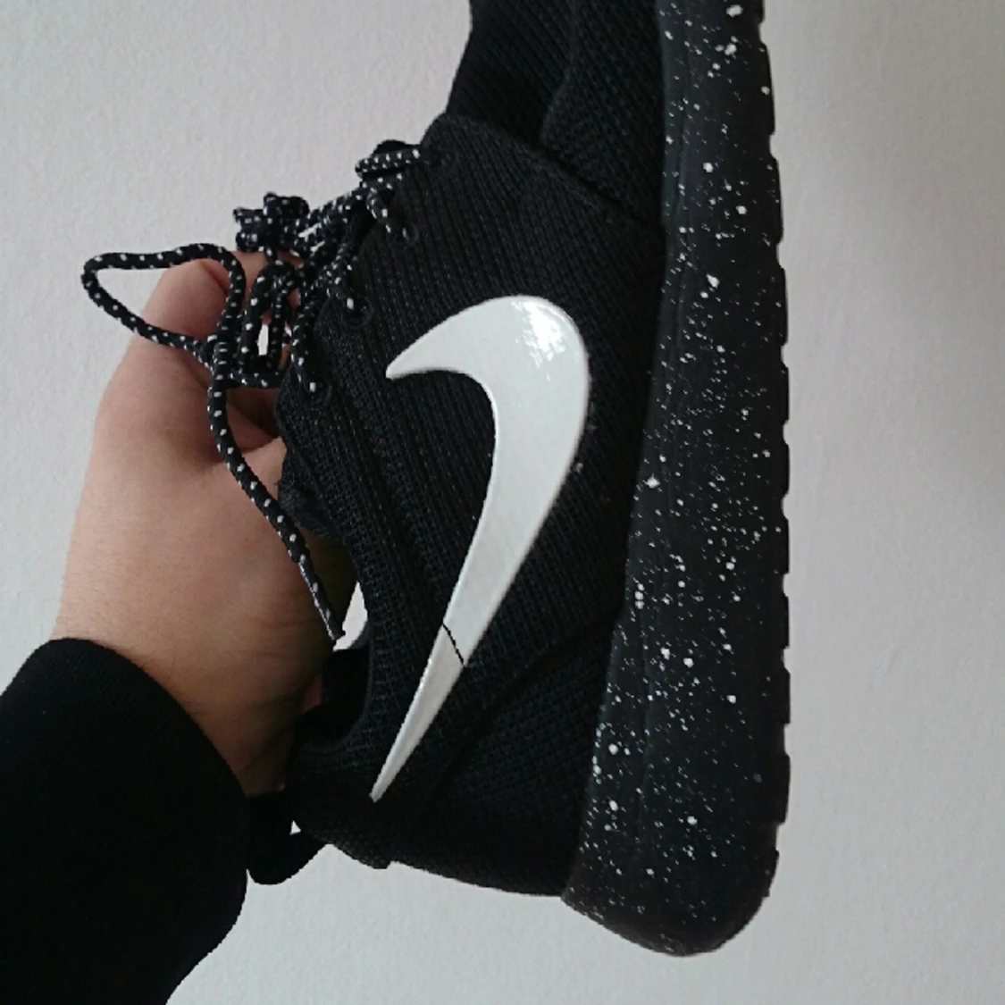 Felköp, använda en gång, nyskick. Om du är tjej så tänk på att det är herrstorlek, EU 43 / US 9.5. Svarta med vita detaljer och limegrön innersula.