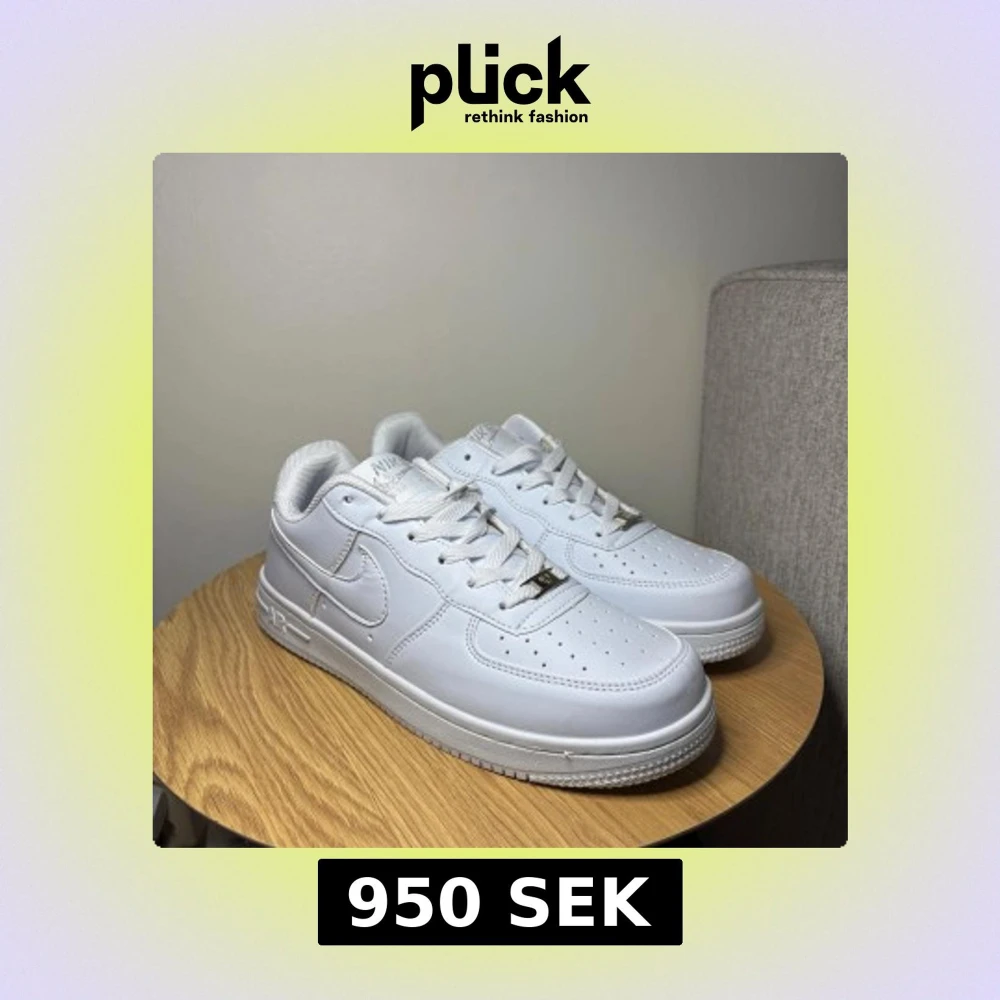 Nike Air Force 1 sneakers i helvitt med klassisk låg siluett. Skorna har snörning, perforerad tå för ventilation och en platt sula med AIR-dämpning. Tillverkade i skinn med vita detaljer och logga på hälen. Perfekt för dig som gillar clean och stilren look.