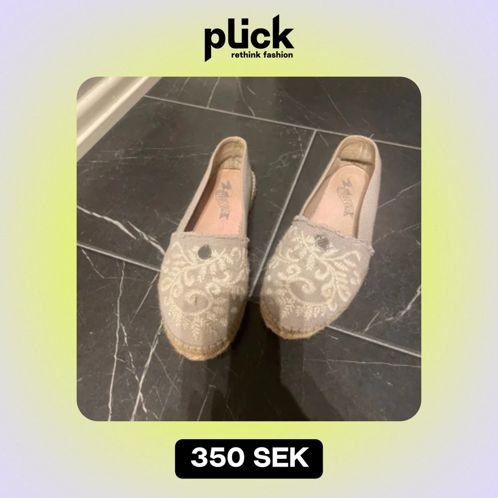 Så fina oddmolly skor! Säljer pågrund av att dem inte kommer till användning, knappt använda. Gråa tygskor med vit brodering ! 🥿