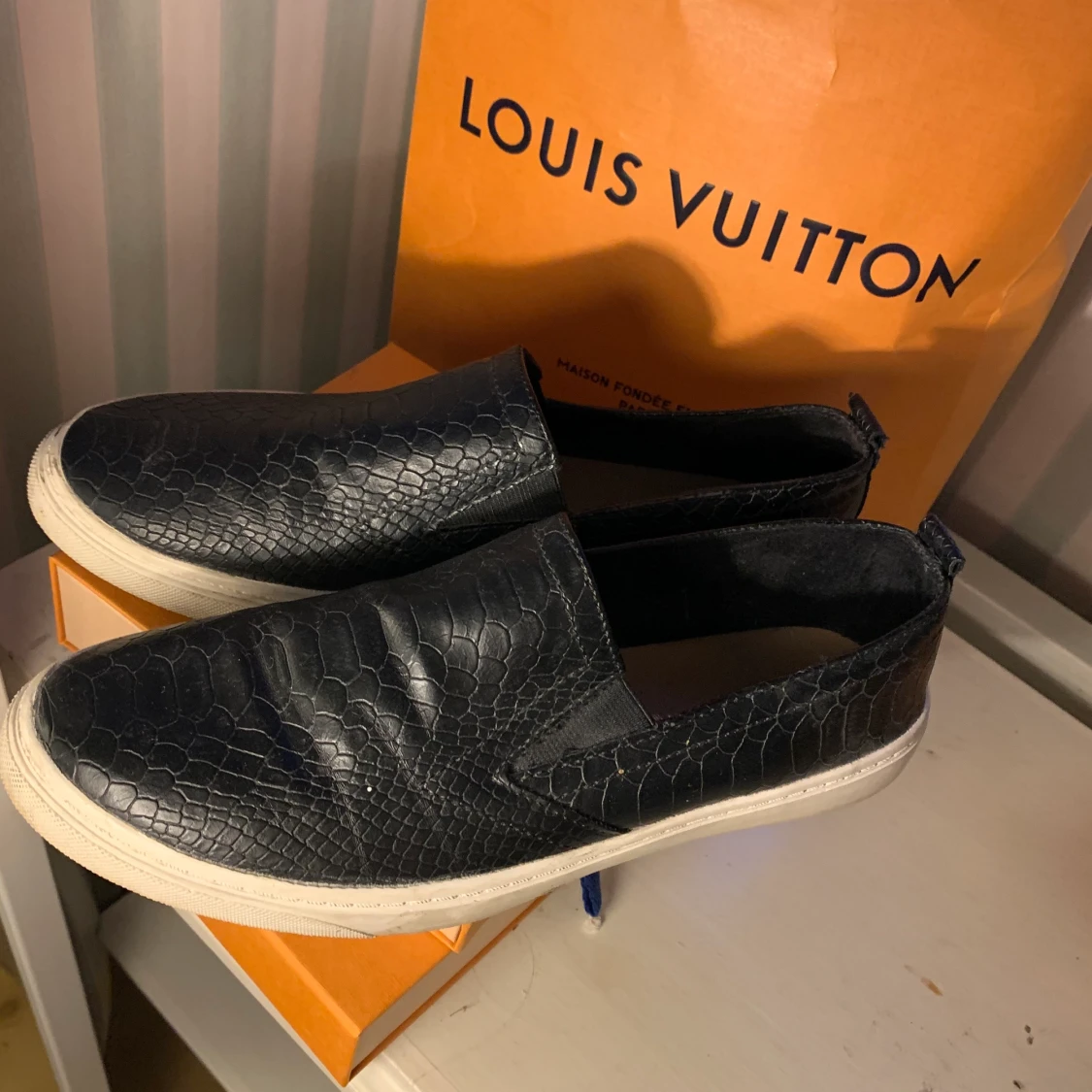 Ett par svarta orm mönstrade slip ons! Köpte utomlands. Knappt använda!