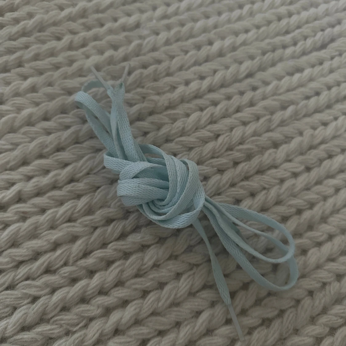 Säljer ett par ljusblåa skosnören i klassisk platt modell. Perfekta för att ge dina sneakers eller andra skor en fräsch och personlig touch.