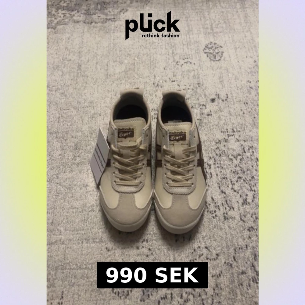 Snygga beige sneakers från Onitsuka Tiger med bruna detaljer och klassisk logga på tungan och hälen😊