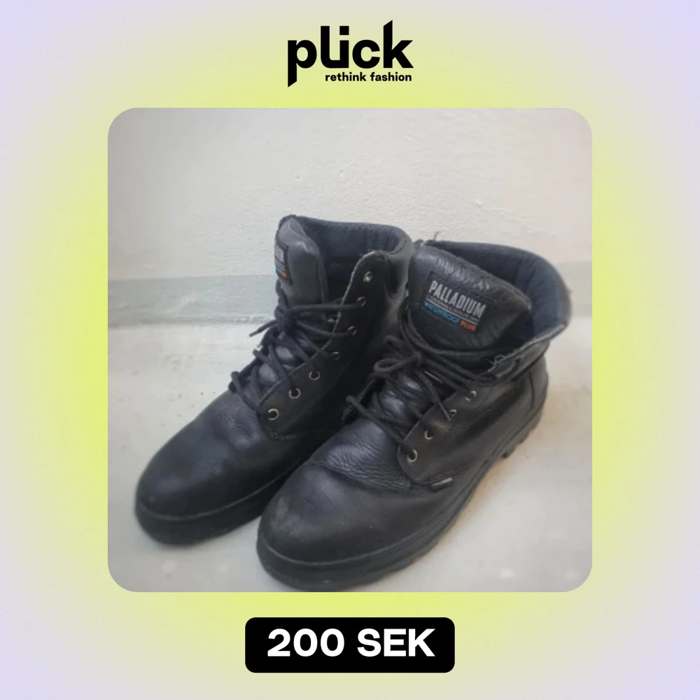 Ömsint använda kängor från franska skomärket Palladium. Nya snören och insmorda för skydd. Obs, sulor medföljer ej.