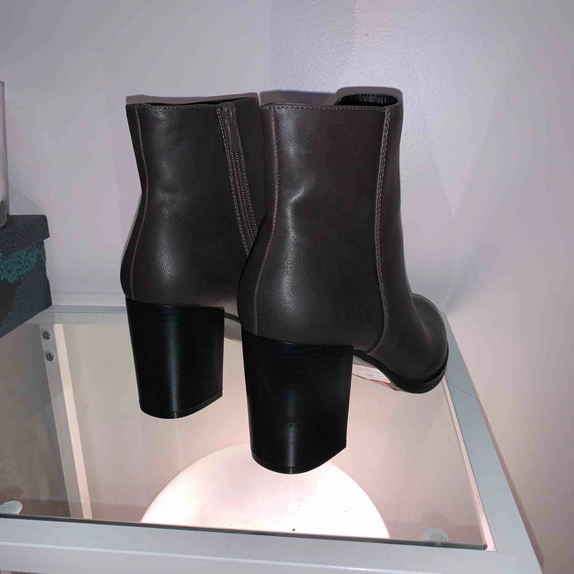 Svart/gråa stövletter med snygg klack! Helt oanvända! Betalas med swish. Kan mötas upp i Halmstad eller skicka mot frakt som betalas av köparen.