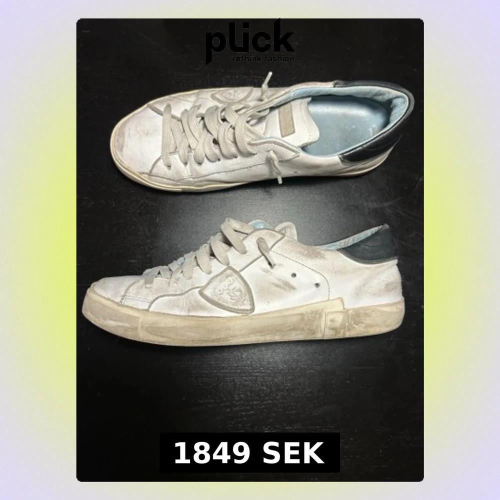 Säljer ett par vita trendiga Philippe Model i bra skick. Nya ligger på runt 3600kr så dessa säljs till ett dunder pris. Använts sparsamt och nyligen rengjorda med kickscare. Tveka inte att skriva för frågor och funderingar
