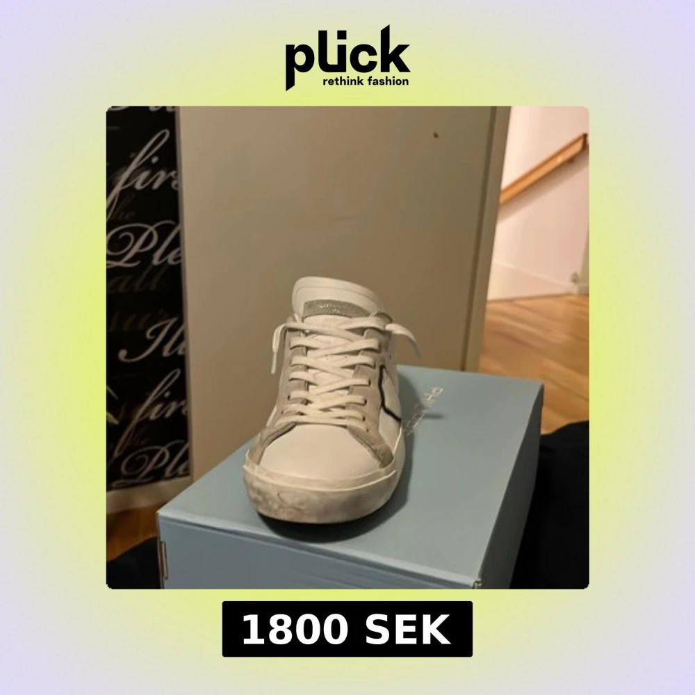 Snygga vita sneakers från Philippe Model med grå och svarta detaljer. Skorna har klassisk snörning och en stilren design som passar perfekt till vardags. De är märkta med logotypen på sidan och baksidan.