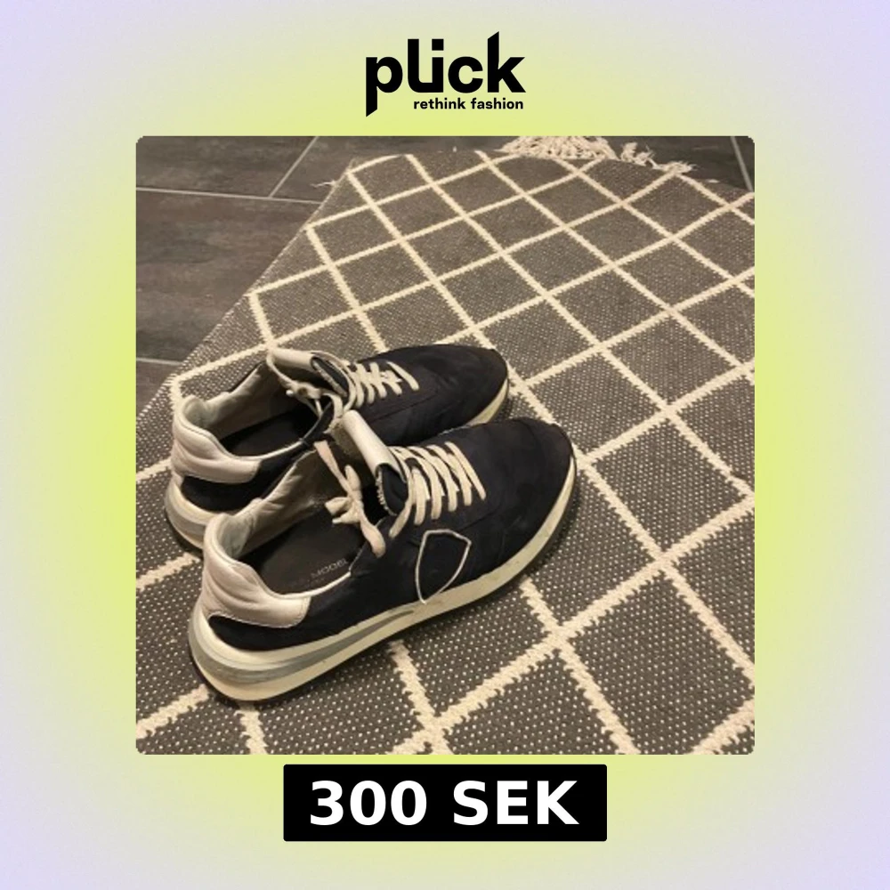 Säljer nu dessa snygga skor från Philippe Model. De är i använt skick och den enda defekten är ett hål vid högra skon som man ser på sista bilden. Färgen är ljusare än vad den såg ut på bilden (mörkblå med lite ljusare ton). Storlek: 40 men små i storleken skulle säga de passar mer 41 Äkta och säljs billigt! Box medföljer ej! Därav priset