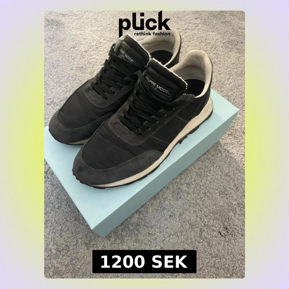 Philippe Model sneakers i klassisk modell med snygga detaljer i mocka och textil. Skorna har svart snörning, vit innersida och en vit sula som ger en clean kontrast. Perfekta för dig som gillar stilrena och tidlösa sneakers. Använda fåtal gånger. Hör av er vid frågor.