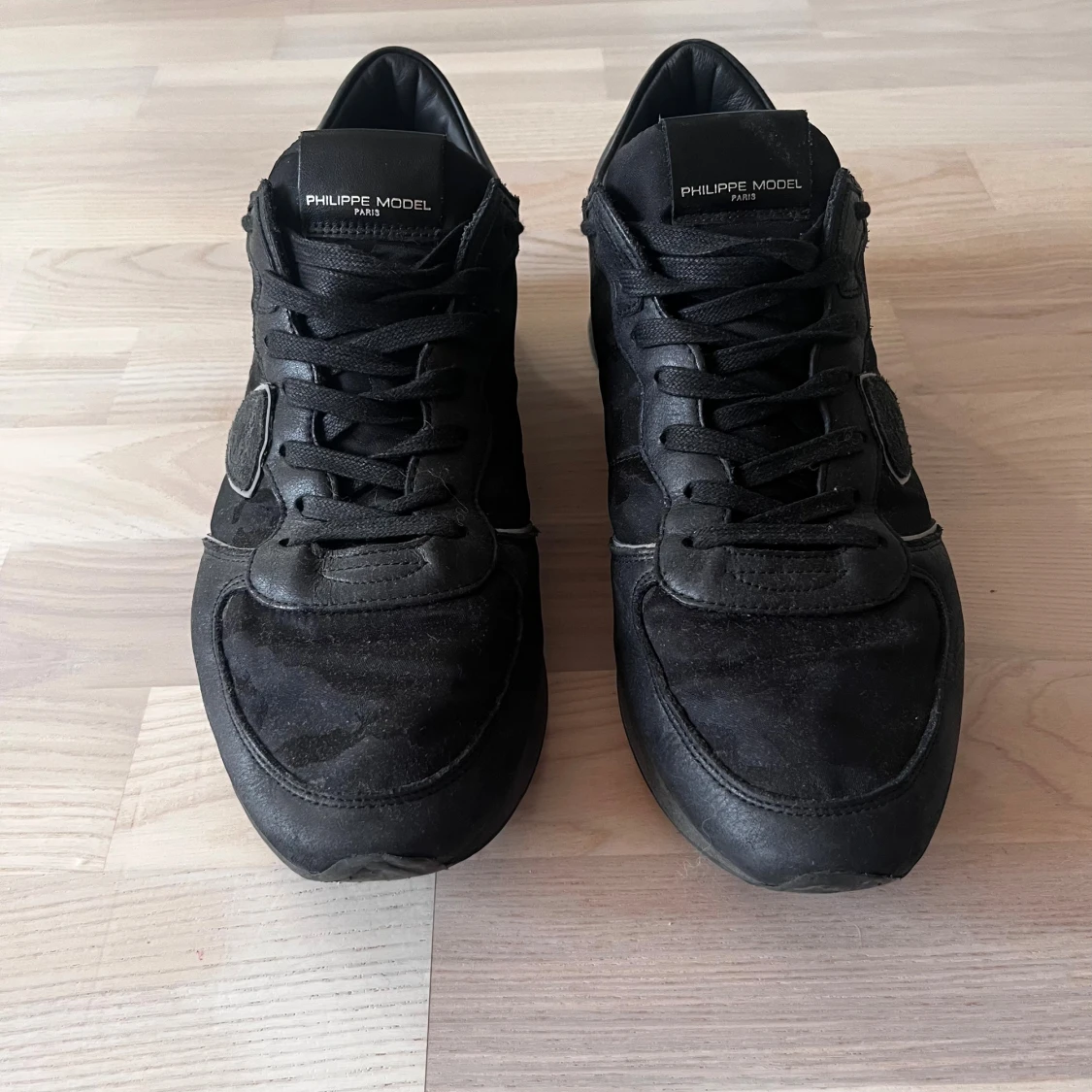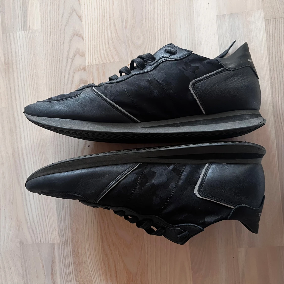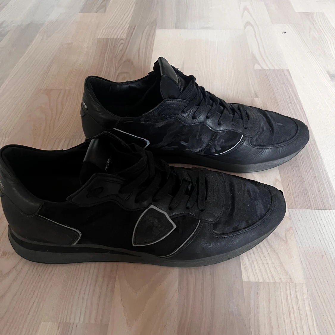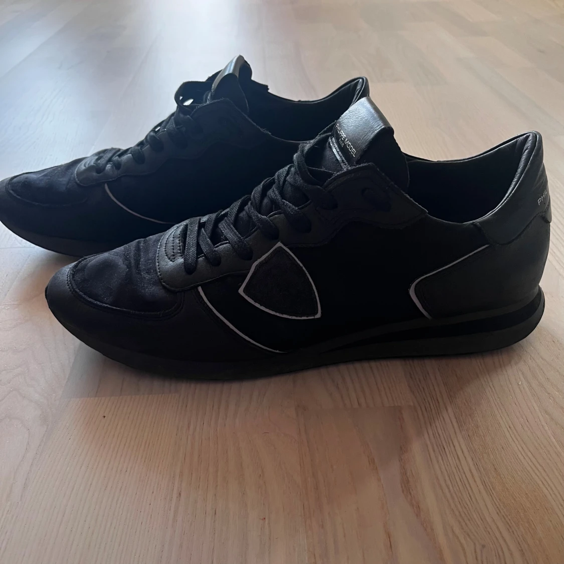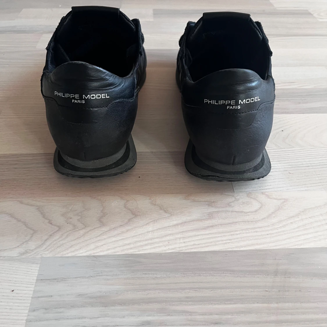 Snygga svarta skor från Philippe Model Paris. Det finns äkthetscertifikat till dem men dessvärre ingen låda. Svinfeta skor nu inför hösten och framåt! Skorna kostar mellan 2500-3000 nya och jag har använt dem ett fåtal gånger endast så skicket på skorna är mycket fint! Har du några frågor så är det bara att höra av sig om ytterligare information eller bilder. Pris är diskuterbart!