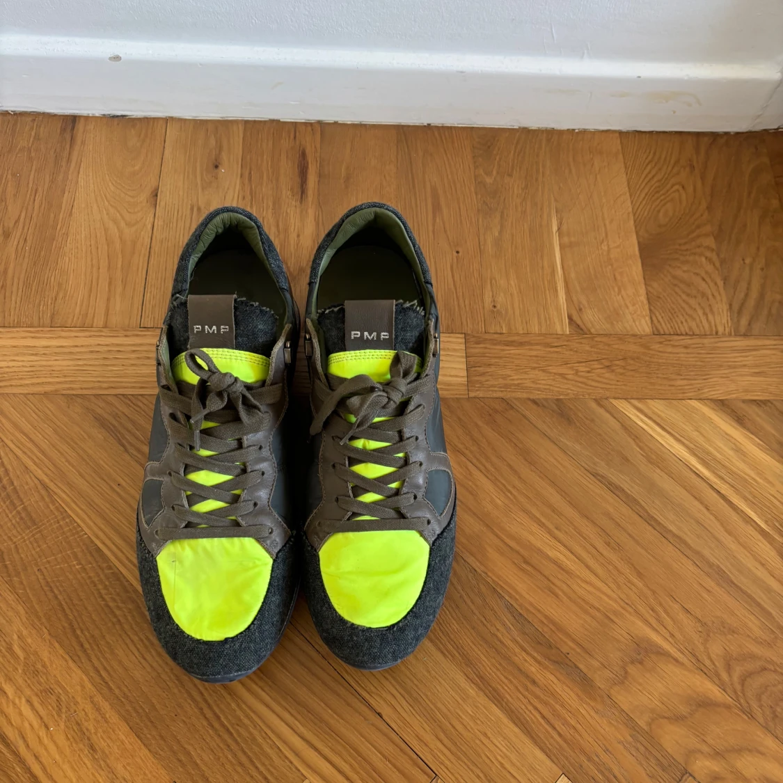 Sneakers med cool mix av material: bruna skinn- och mockadetaljer, svart textil och neon-gula partier framtill. Snygg kontrast mellan färgerna och klassisk snörning. Perfekta för dig som vill sticka ut med din stil.