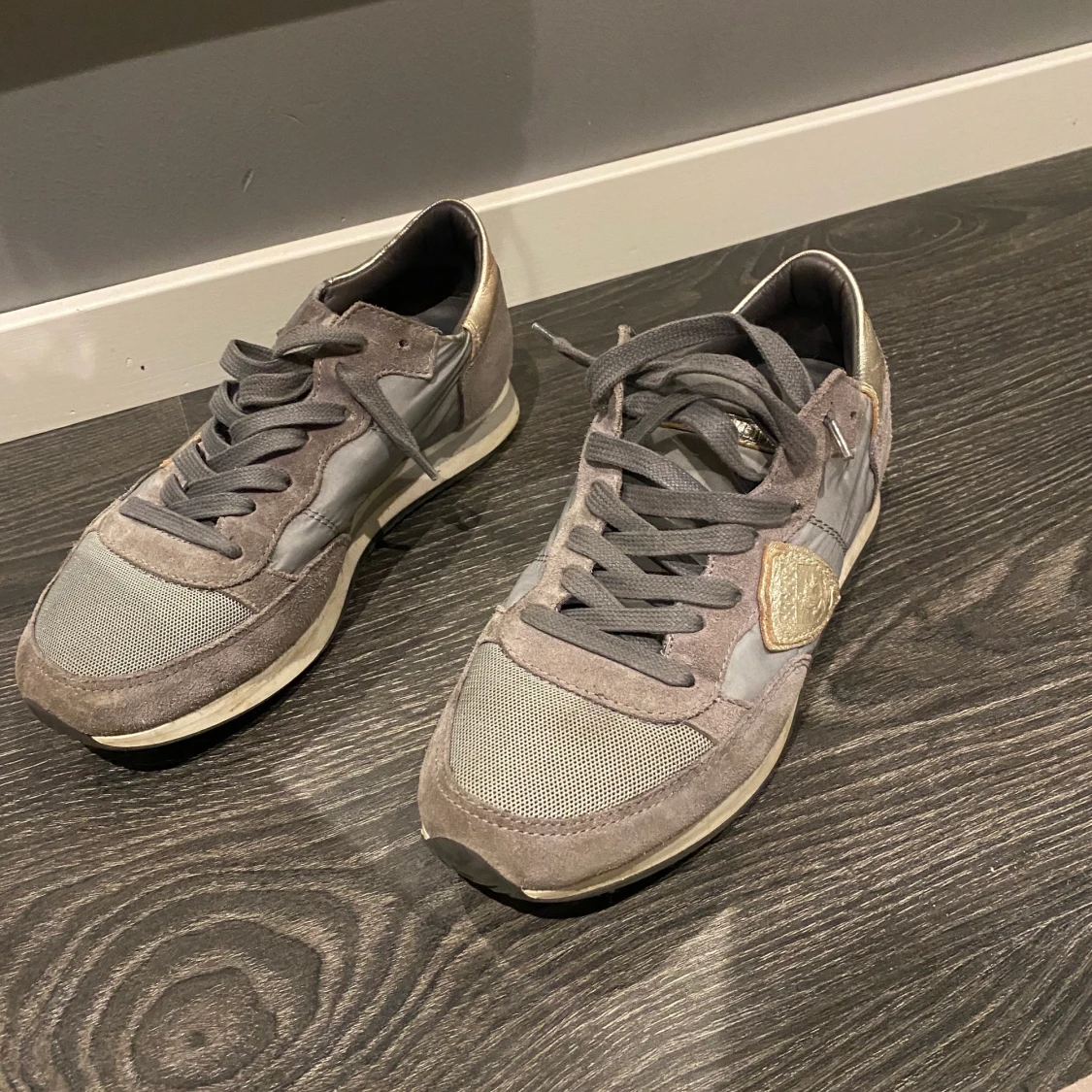 Säljer mina gråa Philippe model skor! Finns både karton och dustbag men tyvärr inget kvitto från köpet:/ Buda💕💕 Skorna är i storlek 36 men passar även 37!