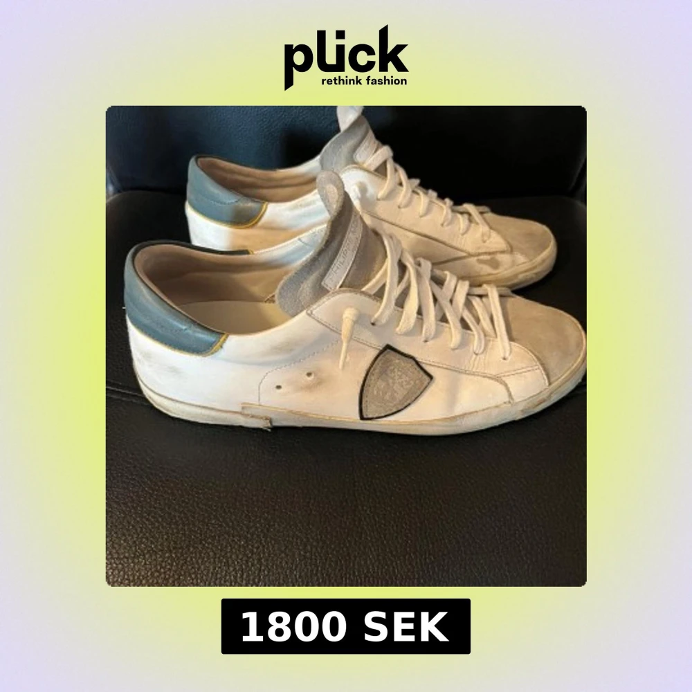 Tja! Jag säljer mina Philippe models då jag tröttnar på dem, de är knappast använda så därav är skicket väldigt bra: skick-9/10, storlek 44 men passar även 43,-45. Vid mer frågor är det bara att skriva. OBS box medföljer ej därav lite lägre pris🫡