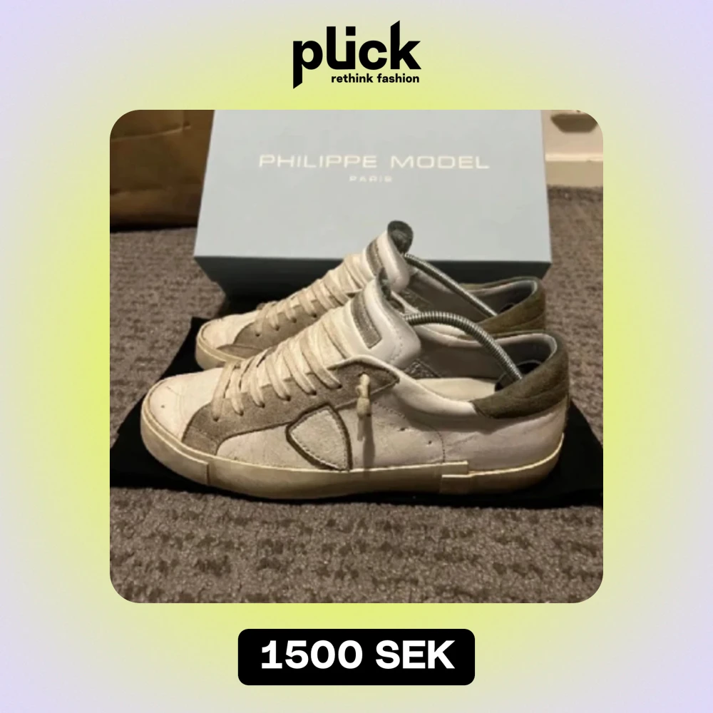 Använda Philippe model skor i skick 6-7/10, eftersom lite skador och att de är cresade, därför det låga priset. Storlek 42. Box och dustbag följer med, men boxen är lite trasig. Nypris 3600, mitt pris 1500. Skriv för mer bilder