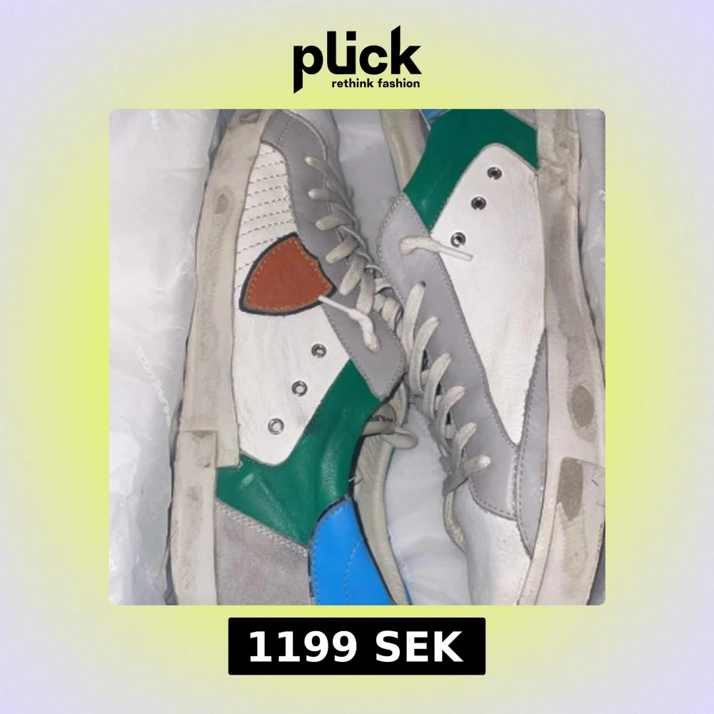Snygga Philippe Model sneakers med cool färgblock-design i vitt, grönt, blått, grått och en brun detalj på sidan. Skorna har snörning, rund tå och är gjorda i en mix av skinn och mocka. Perfekta för dig som vill sticka ut med din stil. Äkta