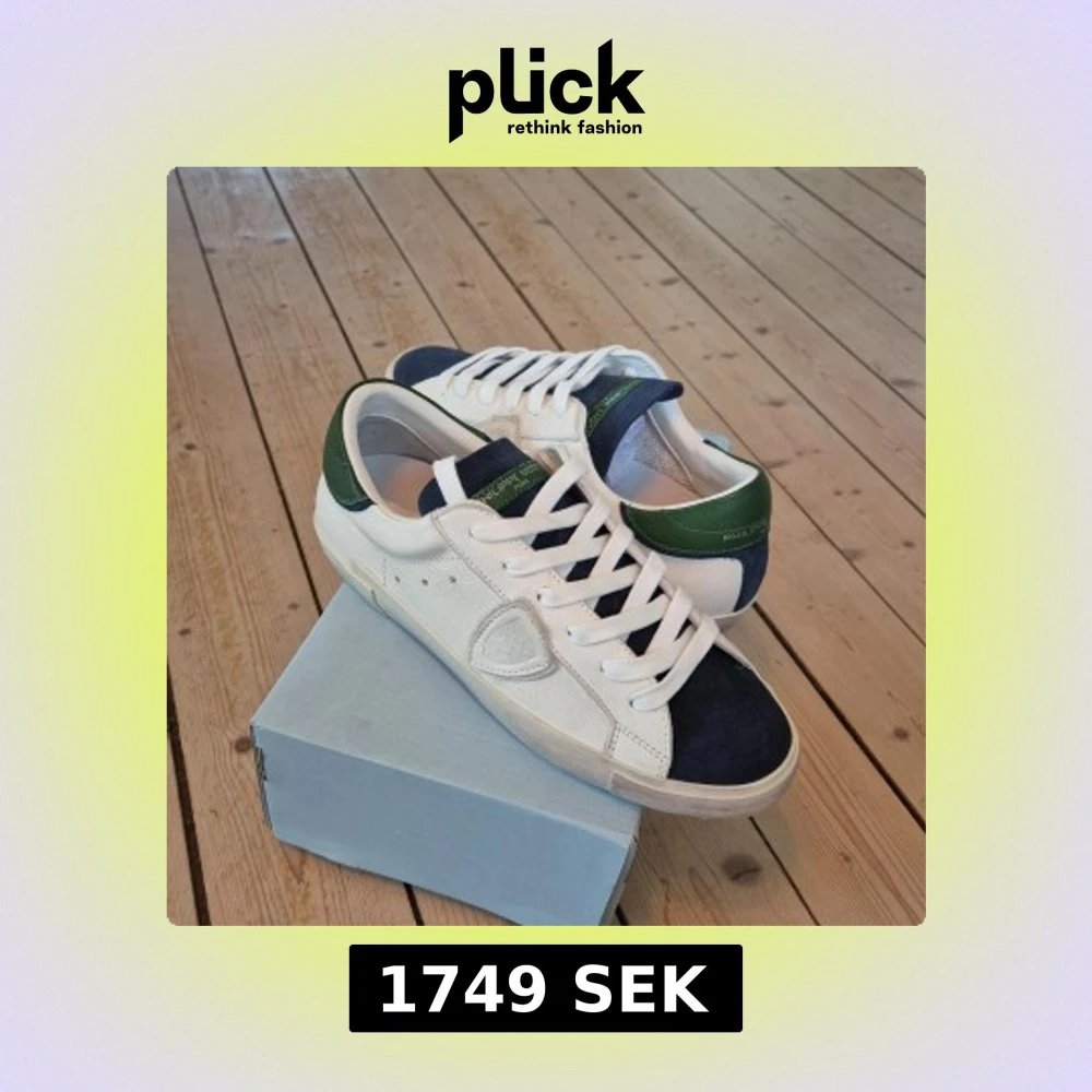 Supersnygga helt nya Philippe Model skor i med vit och grönt läder och blått suede. Skorna är storlek 44 men passar även 44,5