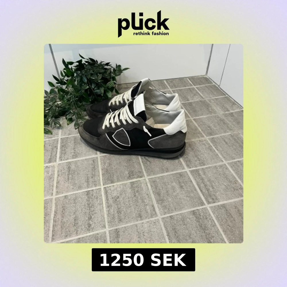 Snygga sneakers från Philippe Model i svart och grå mocka med vita detaljer och snörning. Skorna har en klassisk rund tå och platt sula, samt vit hälkappa och vita skosnören. Perfekta för dig som gillar stilrena och trendiga sneakers.