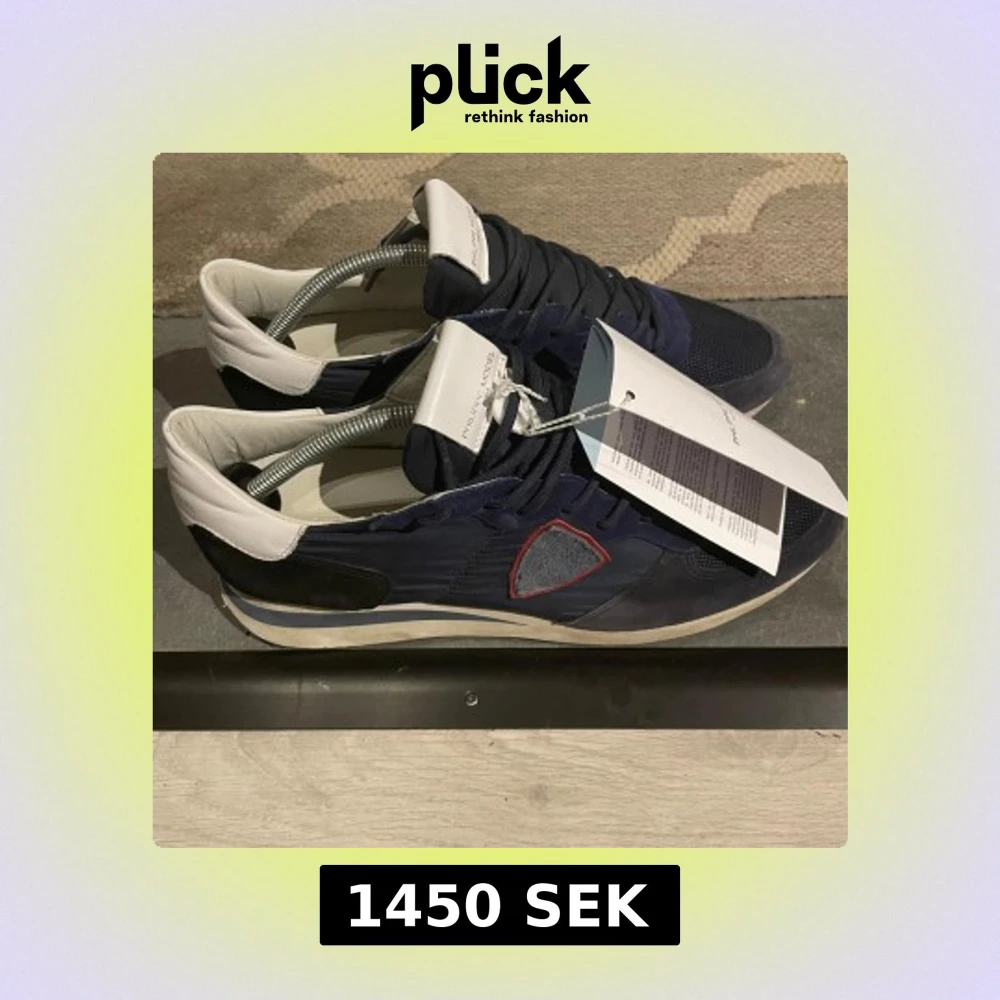 Skick 9/10 trainers i storlek 45 . Phillipe modell boxen samt tagsen och dustbag följer självklart med det vill säga allt OG. Snygga marinblå sneakers från Philippe Model med vita och svarta detaljer. Skorna har en broderad logga på sidan och snörning framtill. Perfekta för en stilren look.använda några gånger