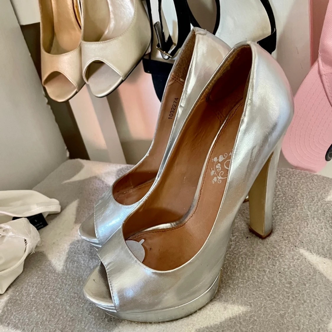 Super snygga platå pumps med inbyggd platå fram och hög bredare klack. Bekväma med gummisula under för stabil gång. Märke: Scorett Tiamo. Nypris 699:-