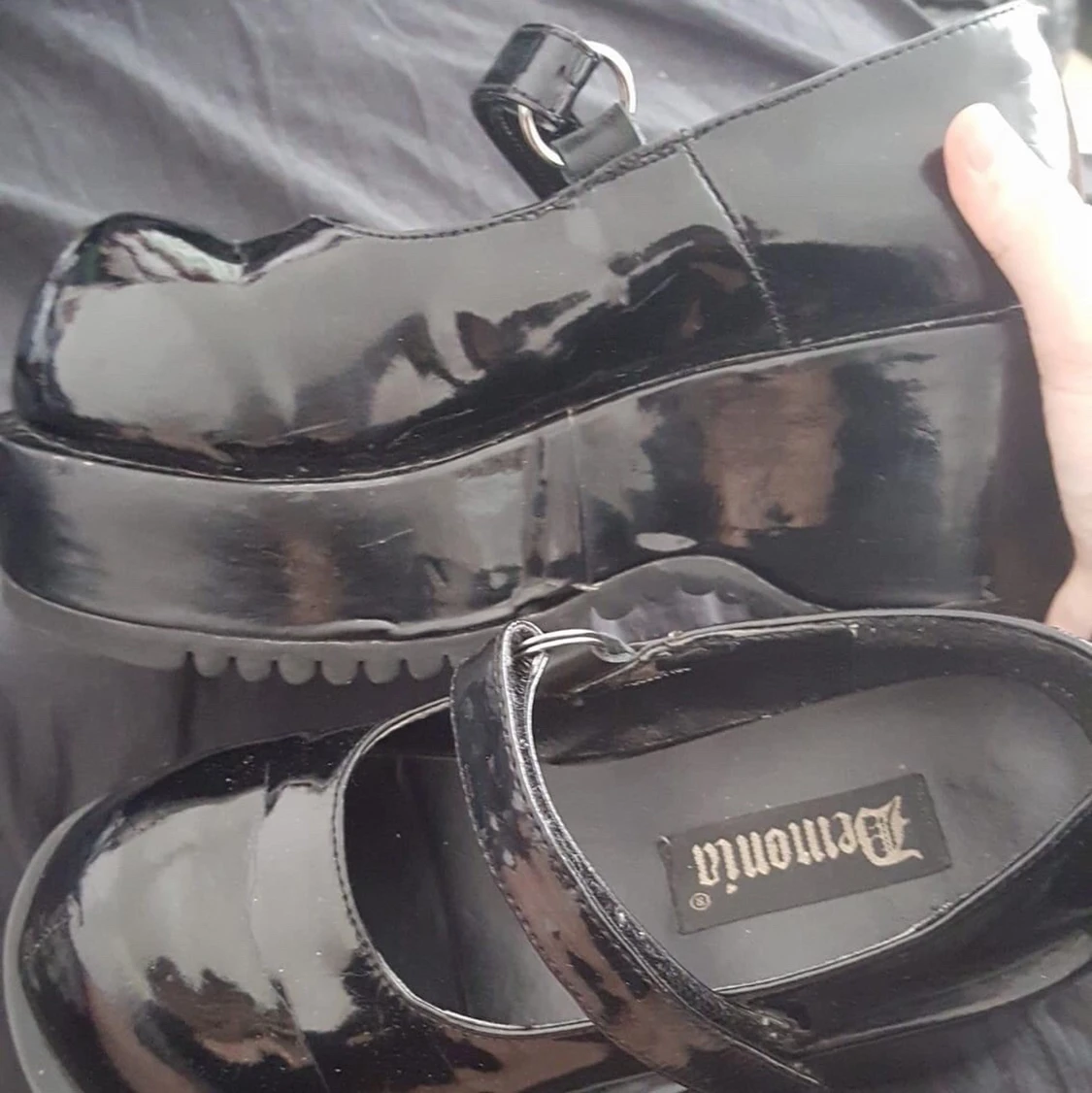 De originala Mary Janes från demonia! Dessa är hemskt populära och går för över tusenlappen på tex depop. Säljer dessa då dom ej kommer till användning längre. Modellen heter dolly / dollie 01 och har blivit använda, dock är dom i otroligt fint skick och har mycket kvar att ge. små skador här och där men inget som stör, tänk på att dom är begagnade dock. Frakt tillkommer ifall du ej kan mötas upp i östersund.